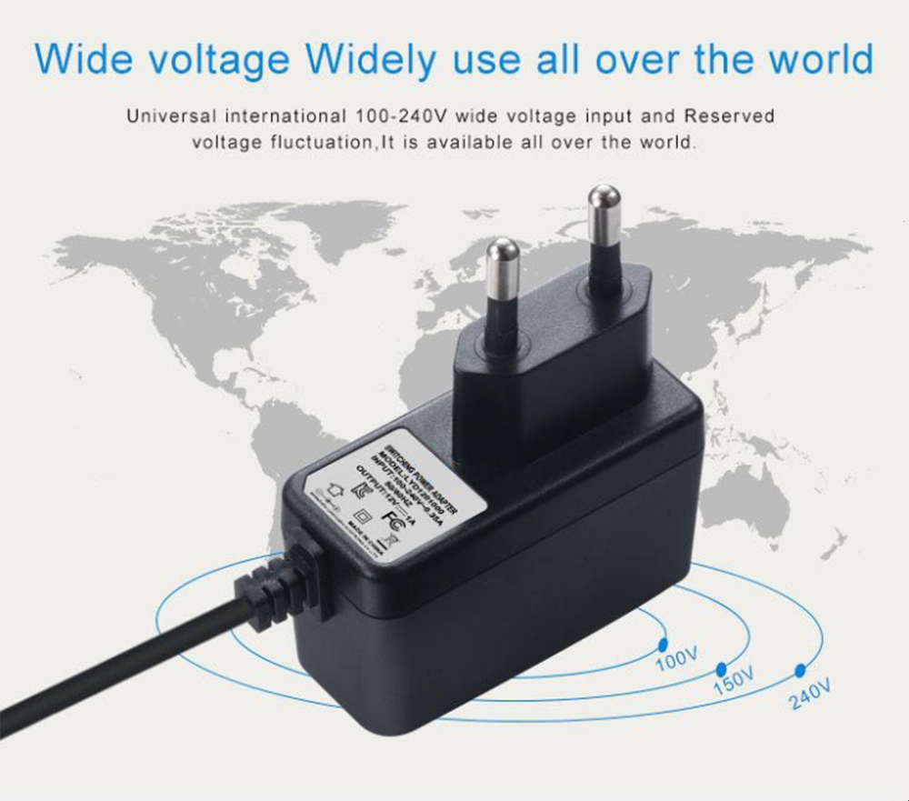 Interchangeable wall plug power adapter for worldwide use, UK EU AU US EK plugs are available for your selection.
